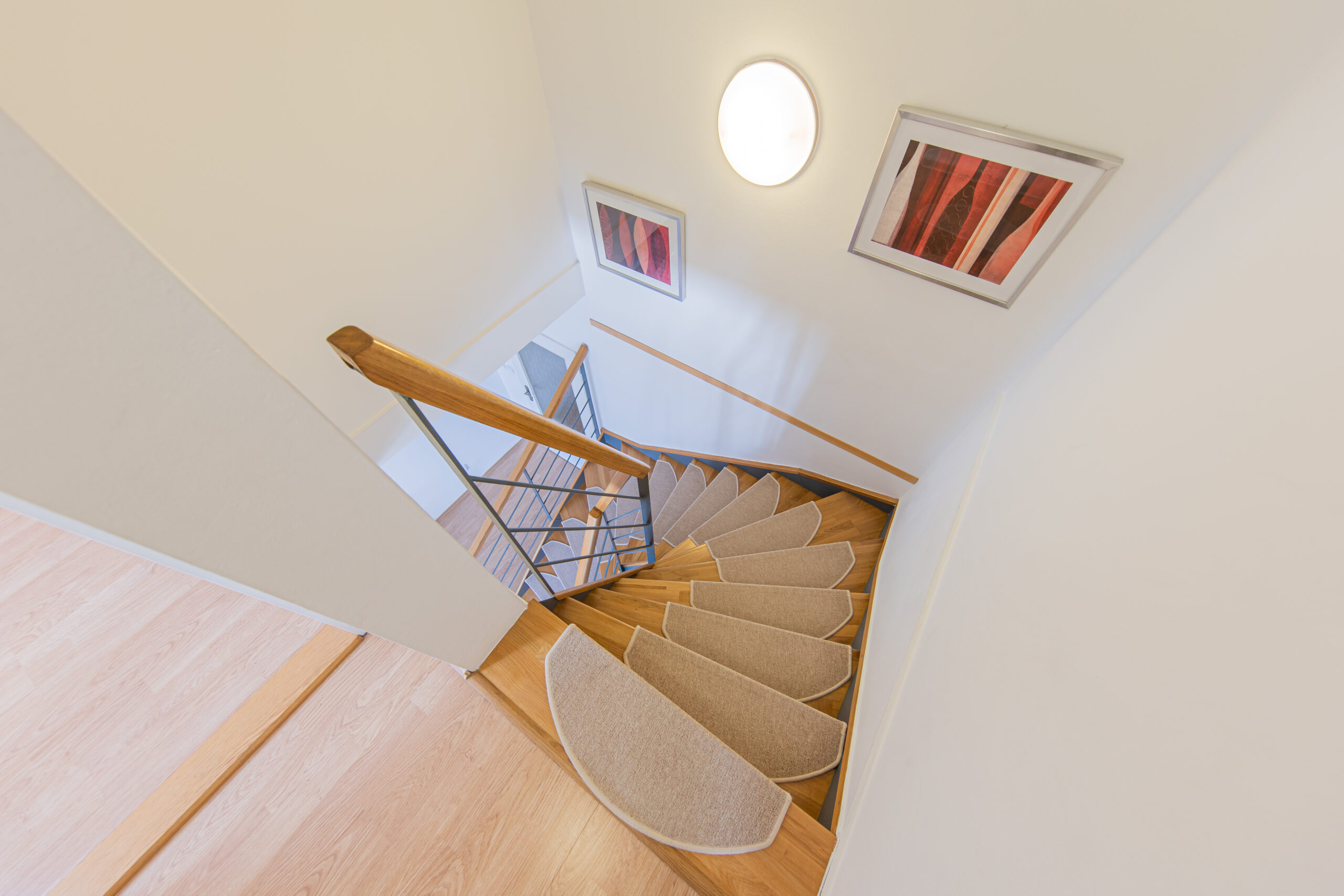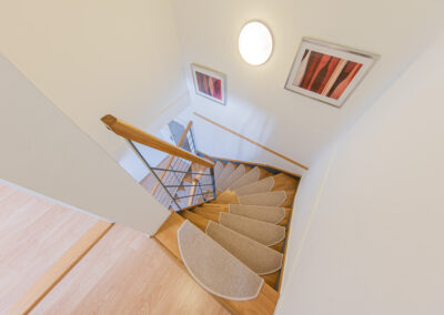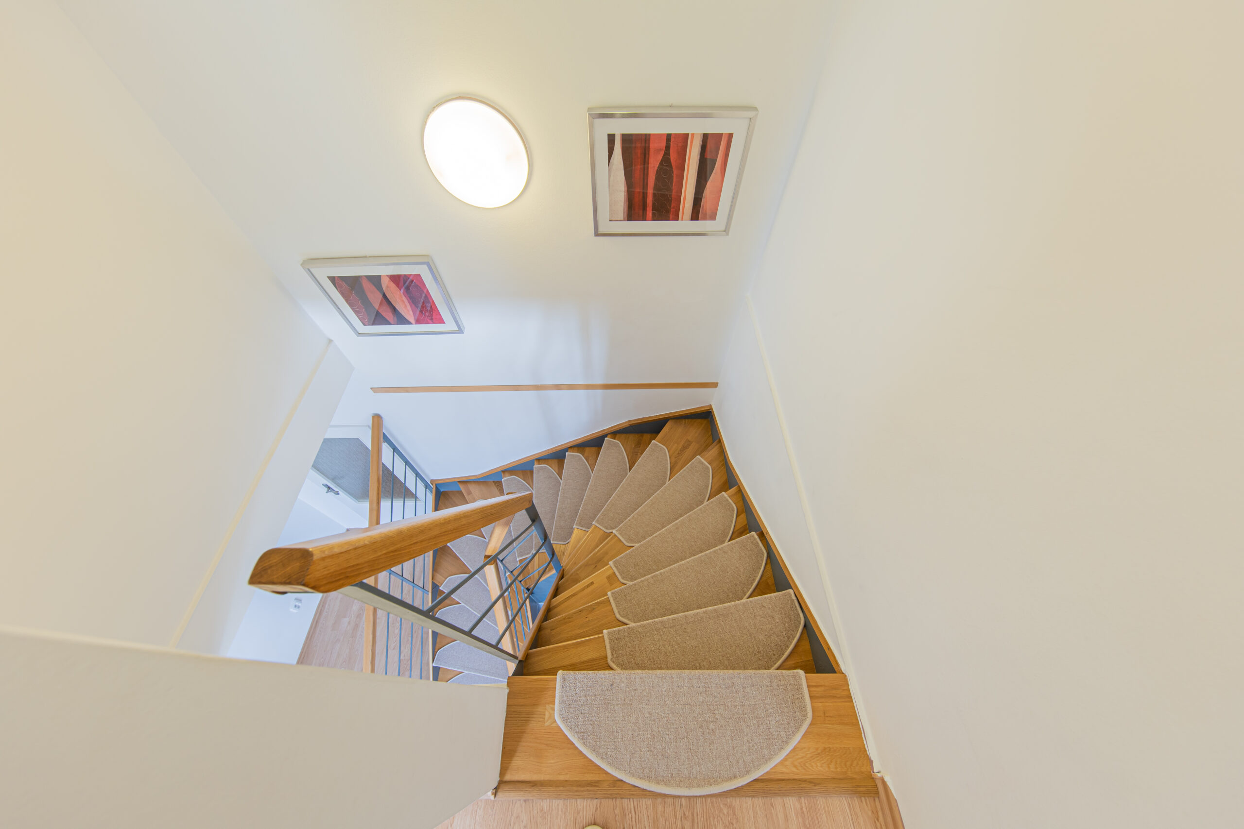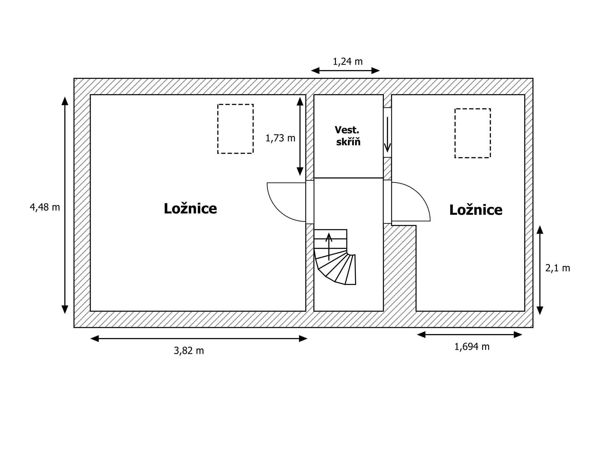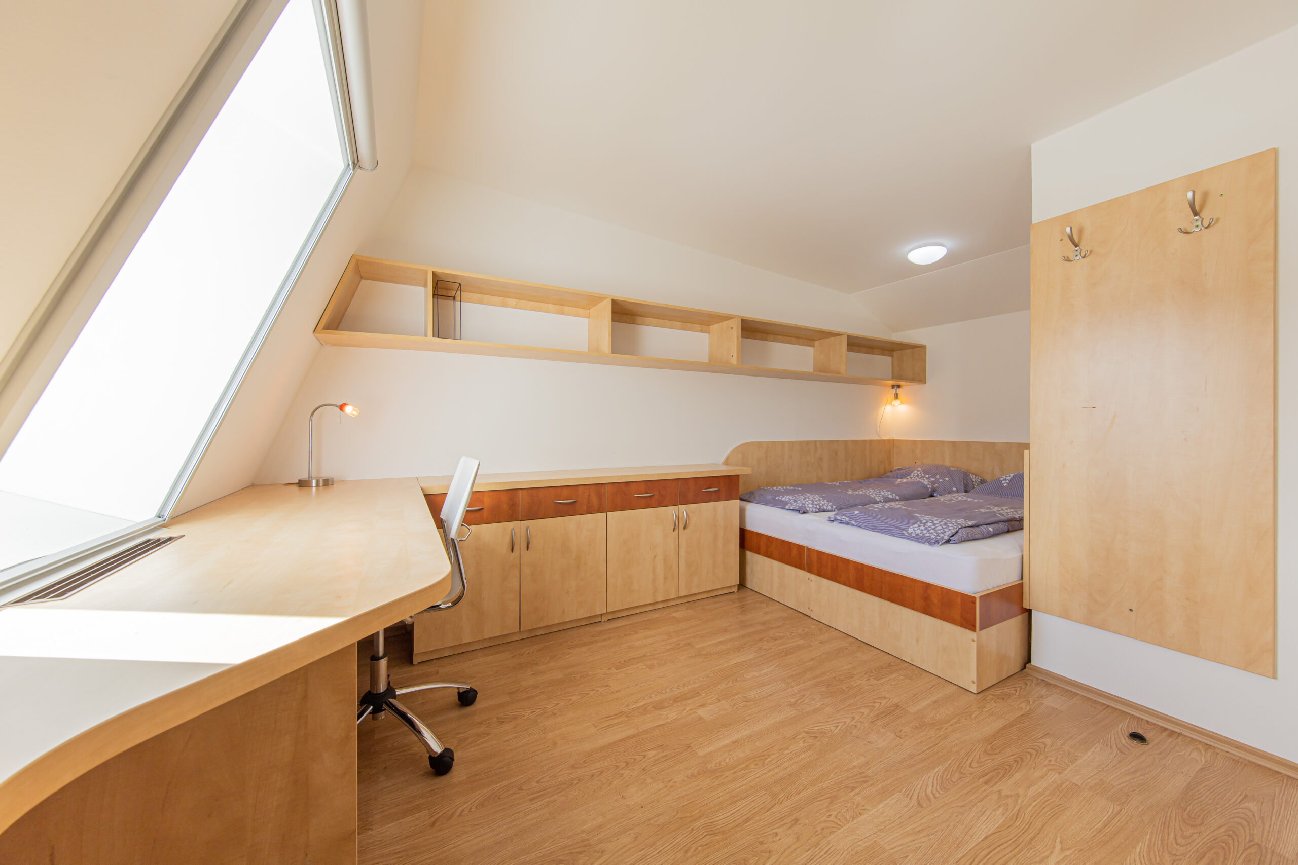 Dispozice apartmánu tvoří pokoj s kuchyňským koutem, předsíň, koupelna a WC ve 3. podlaží a dva samostatné pokoje v podkroví. Apartmán se prodává vybaven.