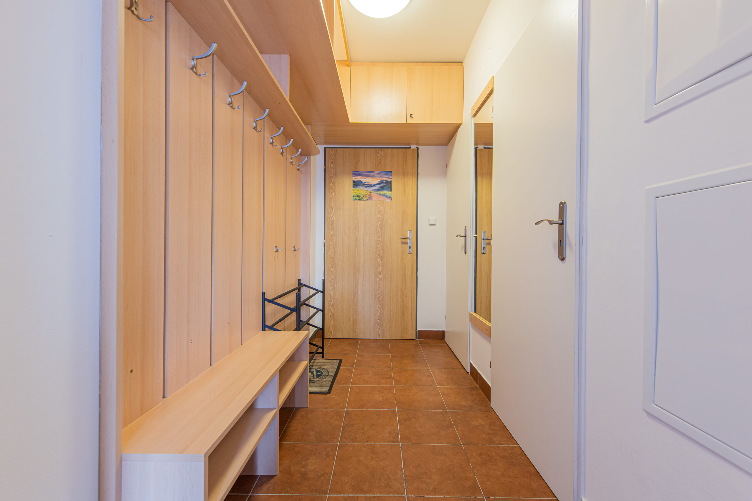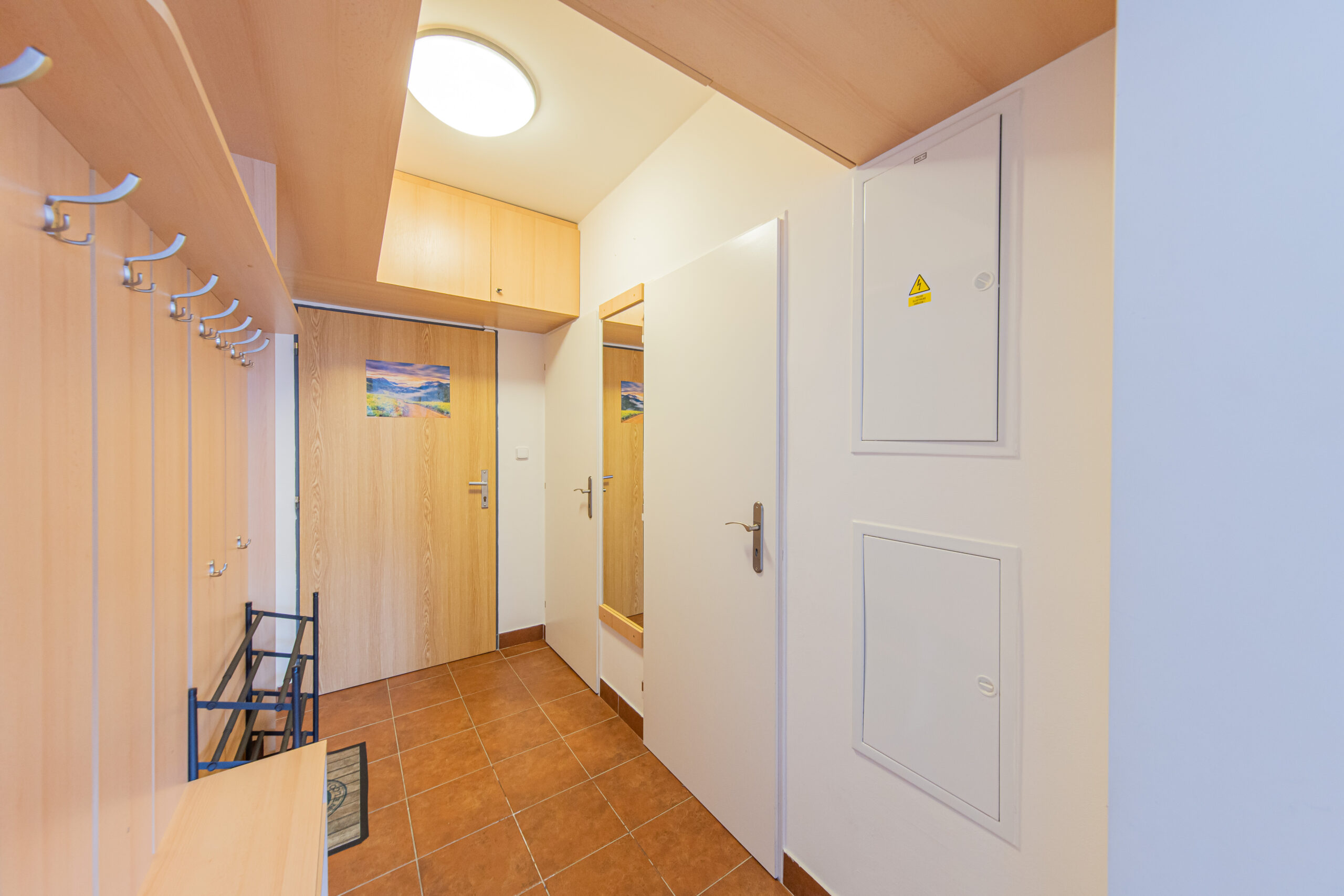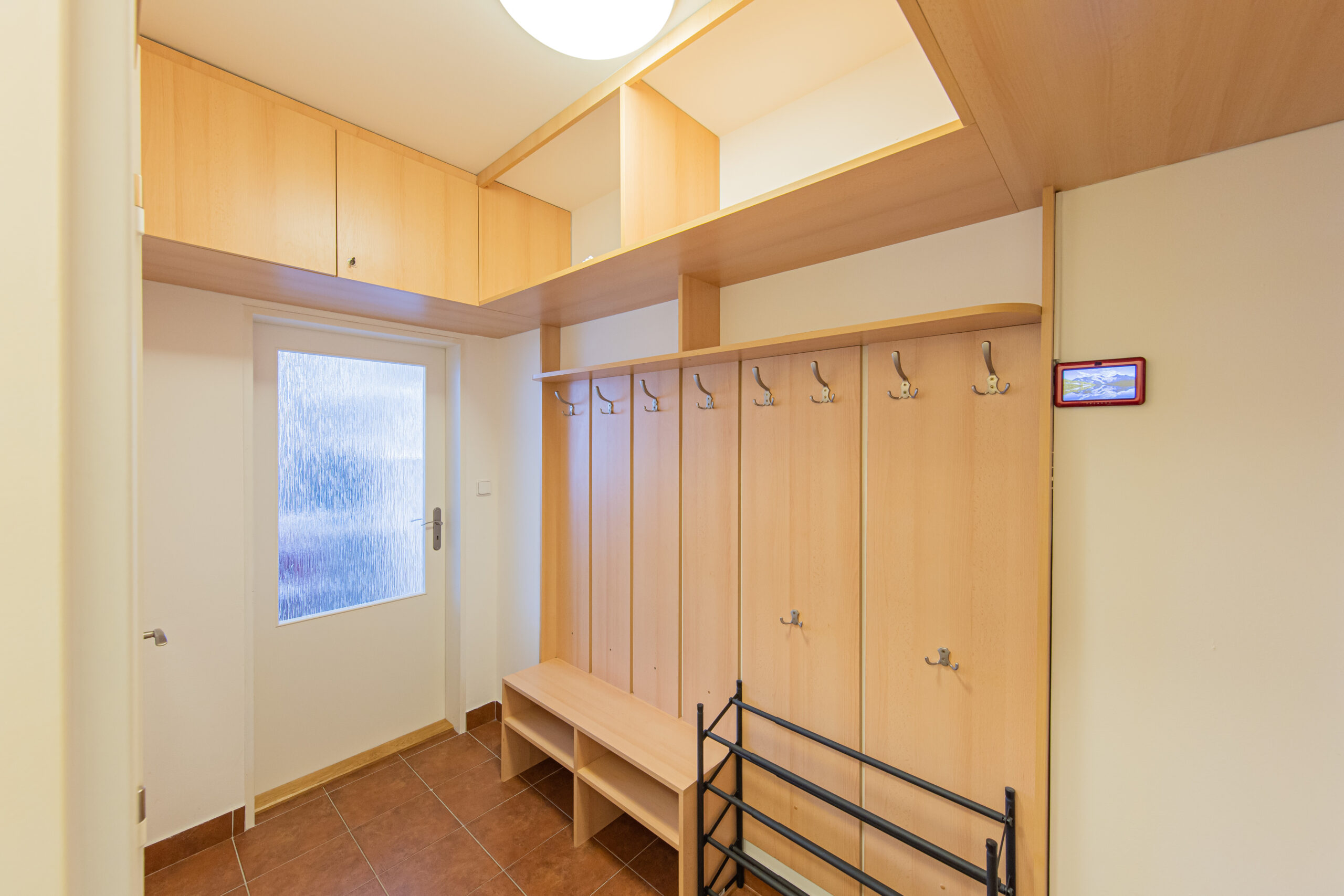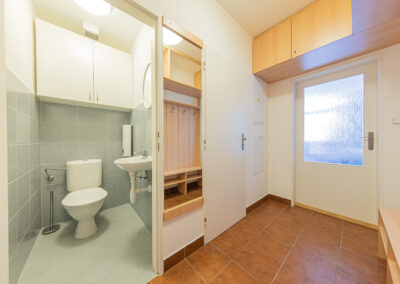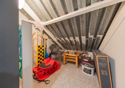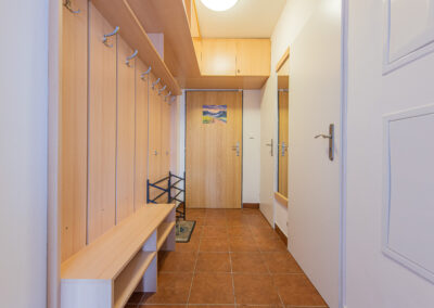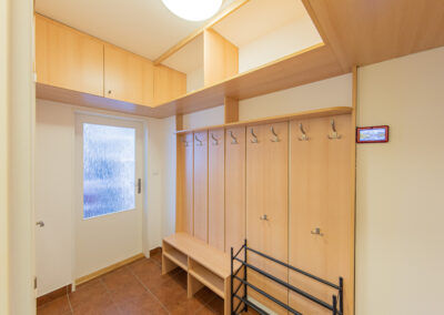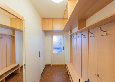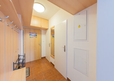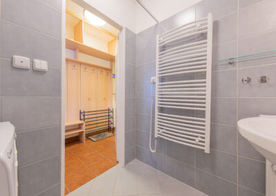 K apartmánu náleží komora ve stejném patře o výměře 4 m2. Své lyže, kola a jiné vybavení můžete ponechat také ve společných prostorách v přízemí domu, které jsou vidět na fotografiích. Vstup do celého apartmánového domu je možný kromě klíčů také na čip, nebo pomocí PIN kódu. Parkování pro vlastníky a rekreanty se nachází na soukromém parkovišti před apartmánovým domem.