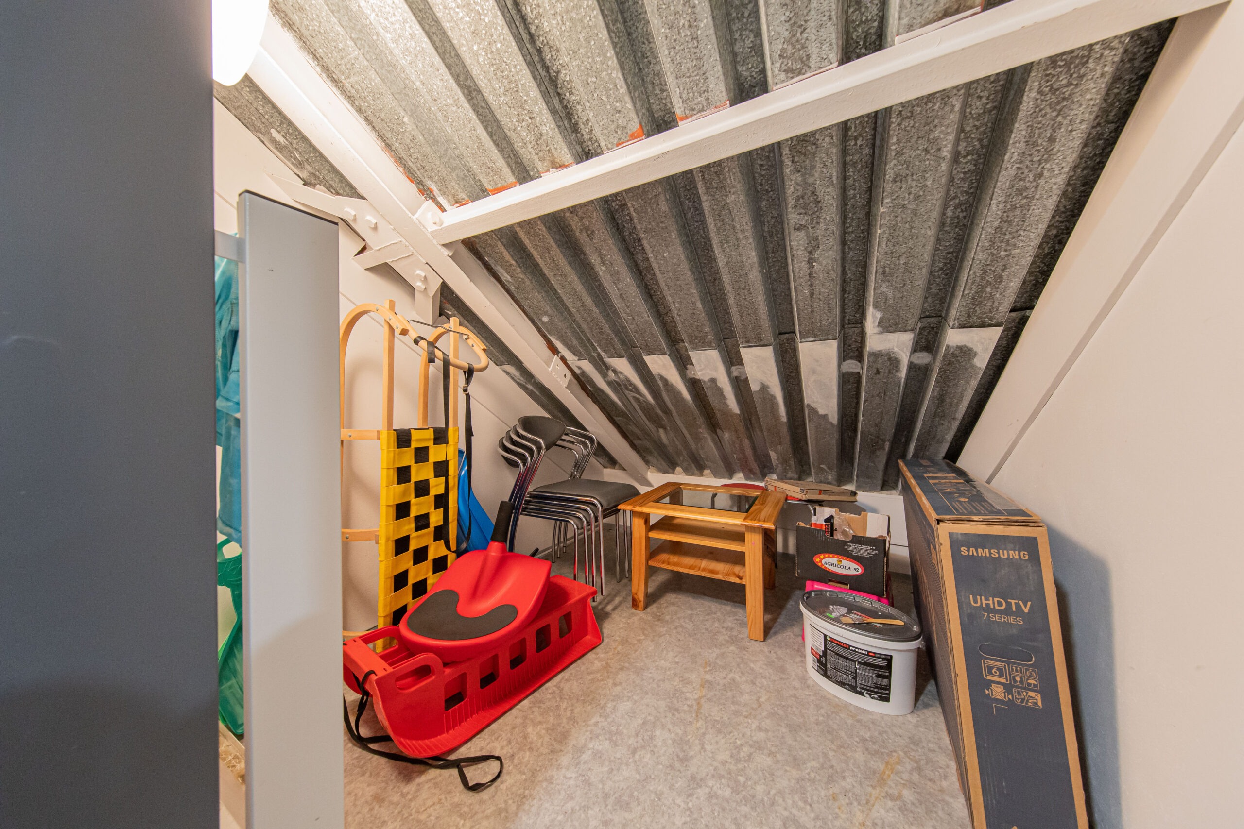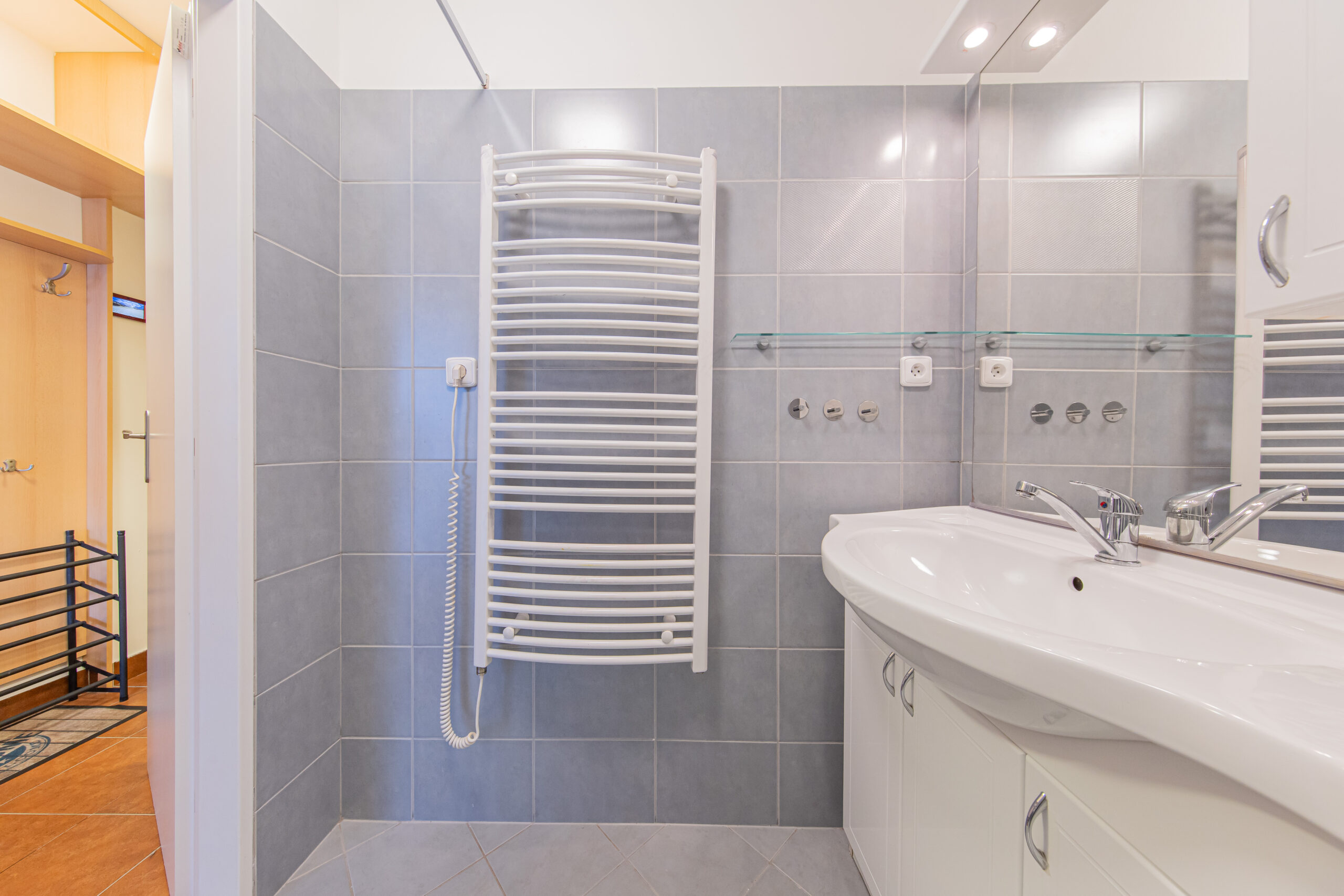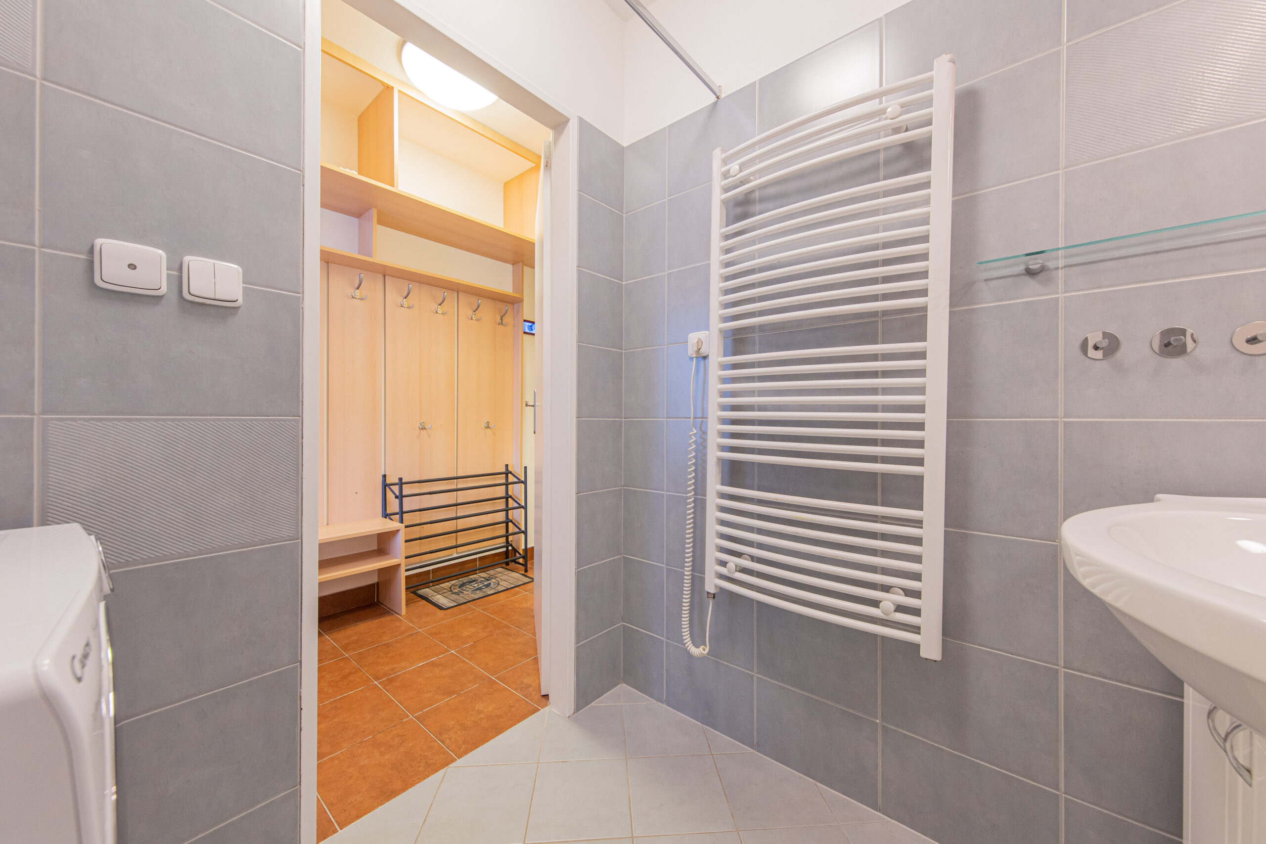 K apartmánu náleží komora ve stejném patře o výměře 4 m2. Své lyže, kola a jiné vybavení můžete ponechat také ve společných prostorách v přízemí domu, které jsou vidět na fotografiích. Vstup do celého apartmánového domu je možný kromě klíčů také na čip, nebo pomocí PIN kódu. Parkování pro vlastníky a rekreanty se nachází na soukromém parkovišti před apartmánovým domem.