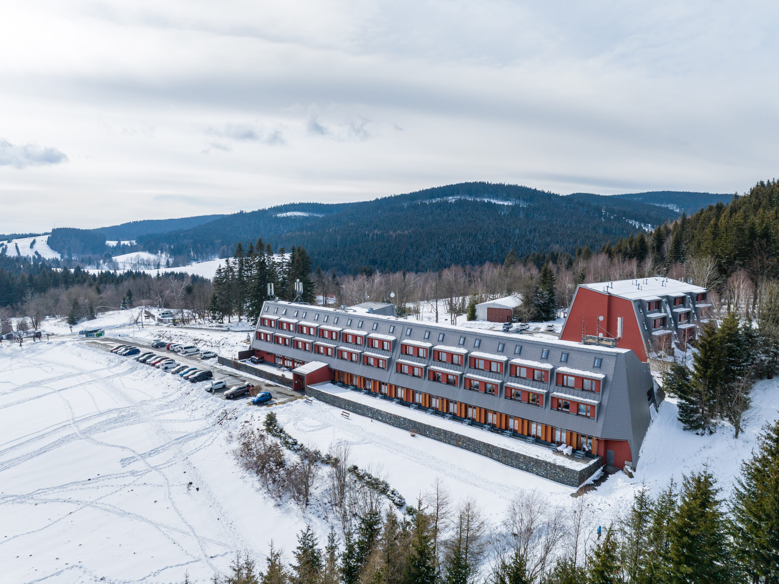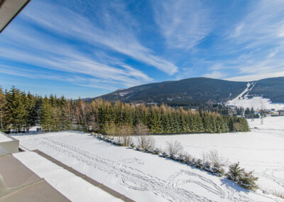 Apartmánový dům je jednou z dominant horského rekreačního střediska Ramzová v Hrubém Jeseníku. Apartmán má podlahovou plochu 64 m2 a nachází se ve 3. nadzemním podlaží zděného domu s výtahem.